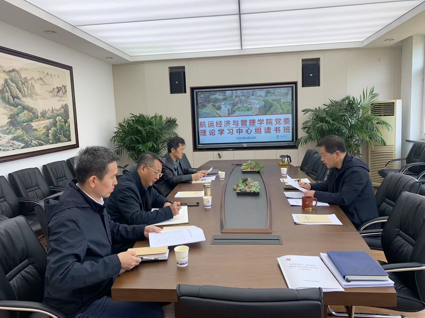 党委理论学习中心组在管理楼B座413A会议室举办深入贯彻中央八项规定精神学习教育读书班,深入学习习近平总书记关于加强党的作风建设的重要论述和中央八项规定及其实施细则精神,学院党委理论学习中心组成员参加会议,会议由党委书记谷艳辉主持。
