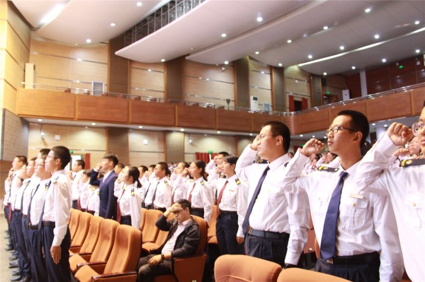 张罕育书记宣读聘任指导员助理的决定,希望他们能把海大优秀的气质传递给更多的海大学子;黄庆波副院长宣读聘任班主任导师的决定并颁发聘书,希望班主任导师们在学习生活中成为同学们的良师益友,为同学们保驾护航。学院为2018级全体新生只做了姓名牌,教师代表为新生代表颁发佩戴学院名牌,是肯定是荣耀,更和责任和担当,希望同学们朝着心中的蓝色梦想,做最好的自己。崔安迪带领全体新生宣誓。最后,开学典礼在校歌中圆满落幕。